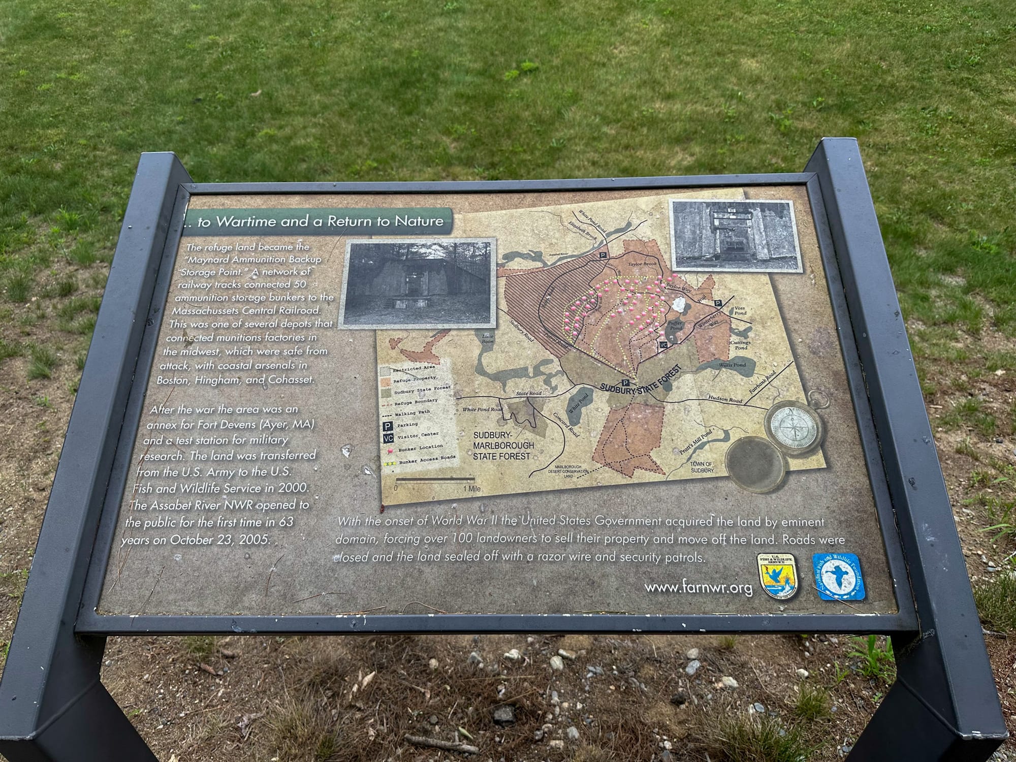 Today, the WWII bunkers of the Assabet River National Wildlife Refuge sit quietly among pine forests, vernal pools, and marshland. The eerie concrete structures — once filled with explosives — are now overgrown with moss and vines. Many are sealed shut with heavy metal doors, but several are visible and easily accessible from the main trails.