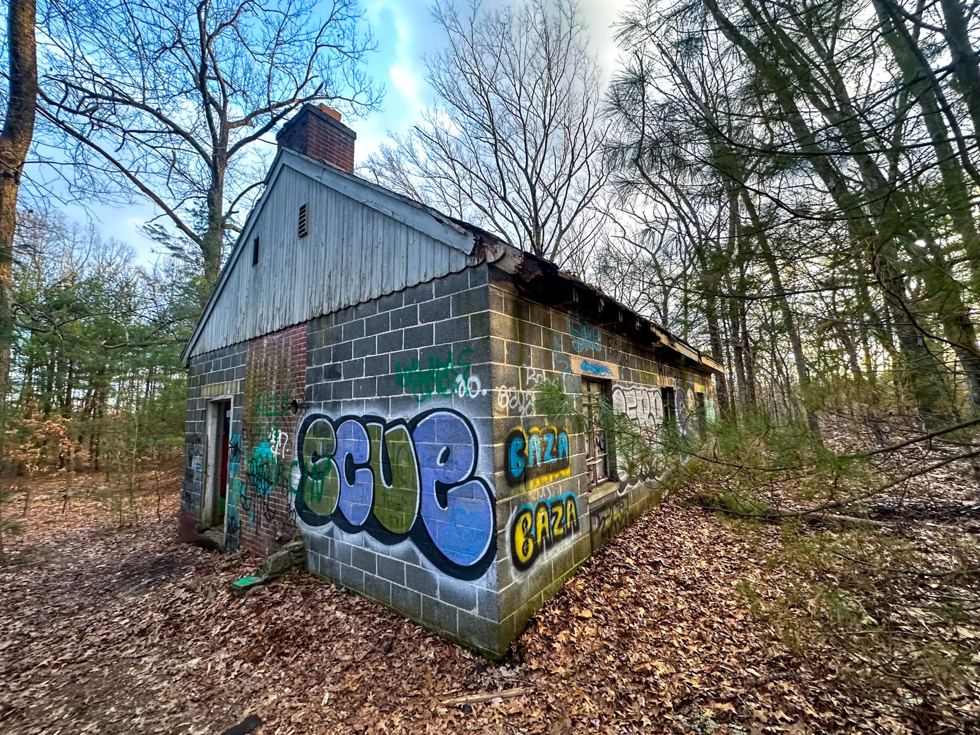 Hidden in the woods between Route 140 and Grafton Street in Shrewsbury, Massachusetts sits one of the area’s most overlooked abandoned places: Camp Wunnegan, a former Girl Scout camp that has been slowly fading back into the forest for more than half a century. Today, its 44 acres are protected as conservation land—but the remains of the old camp still stand, quietly decaying and waiting for curious explorers.