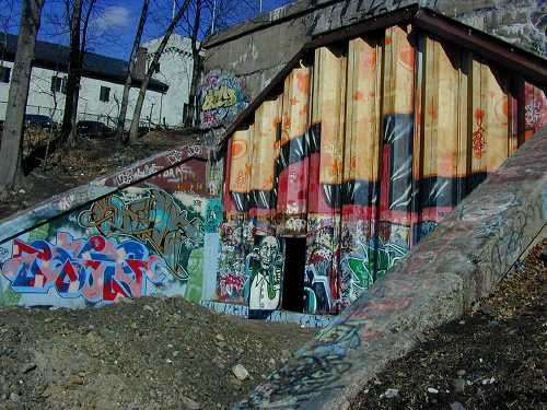 The Western Portal, located near the intersection of Gano Street and Amy Street, marked the western entrance to this massive subterranean corridor. Trains once thundered through this dark archway, bound for downtown stations and beyond.