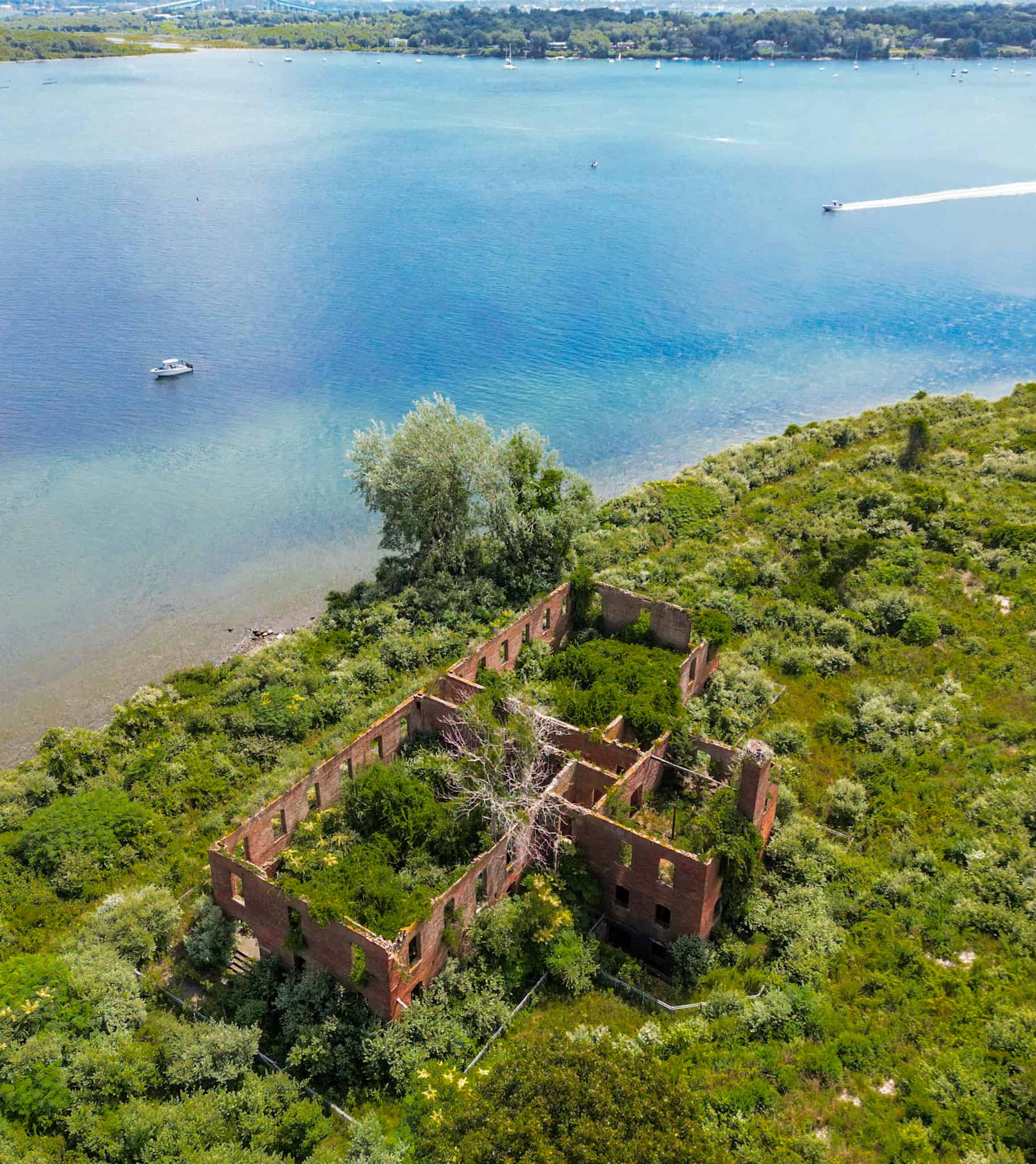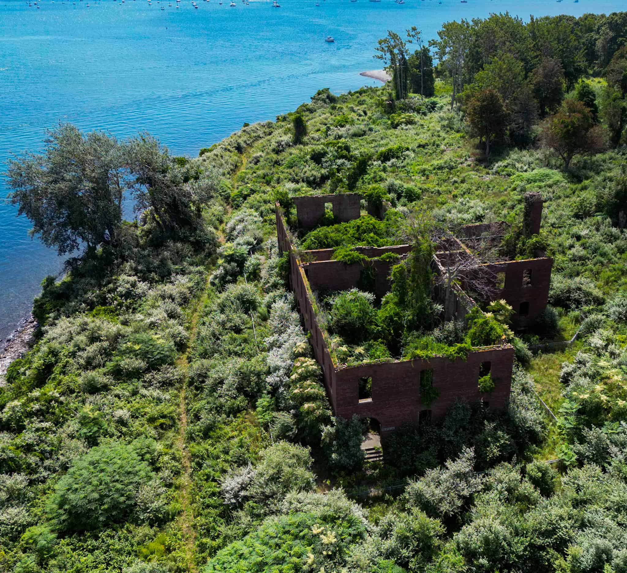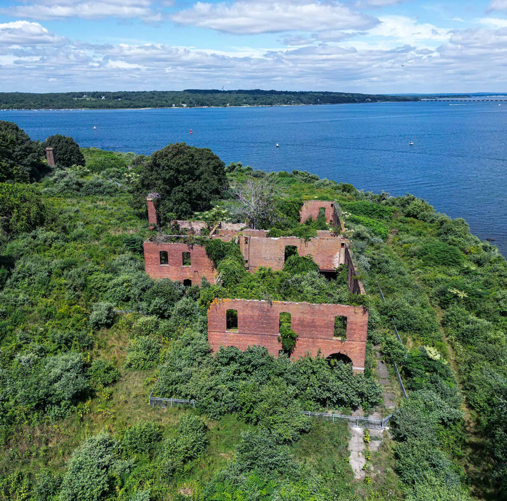 Reaching the Bachelor Officers' Quarters is an adventure in itself. The ruins sit near the northern end of Dutch Island, accessible only by water.