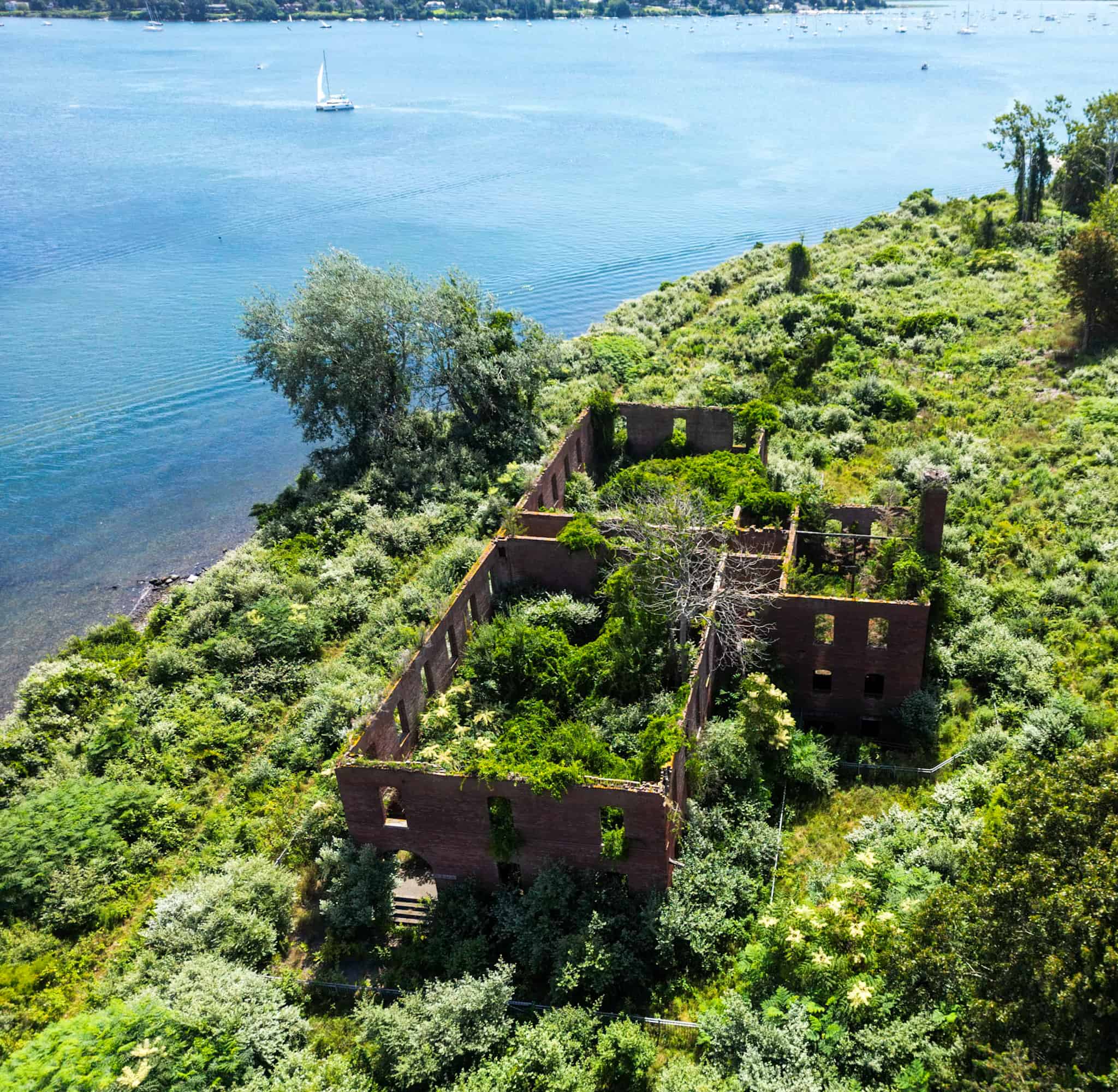 Visitors typically launch kayaks, paddleboards, or small boats from Fort Getty State Park on Jamestown’s western shore. From there, it’s a short paddle across West Passage to the island. The rest of the journey requires bushwhacking through dense vegetation and overgrown trails—a challenging trek not suited for the casual explorer.