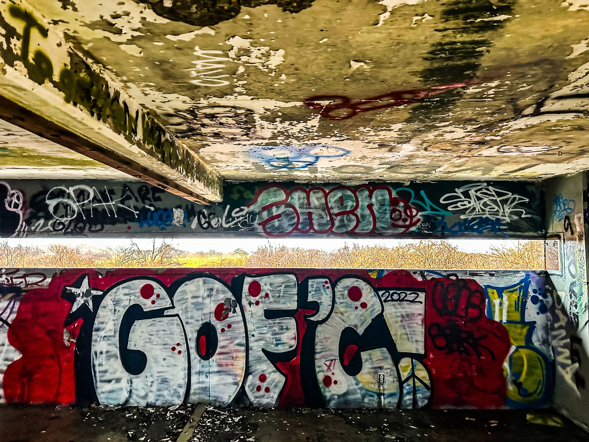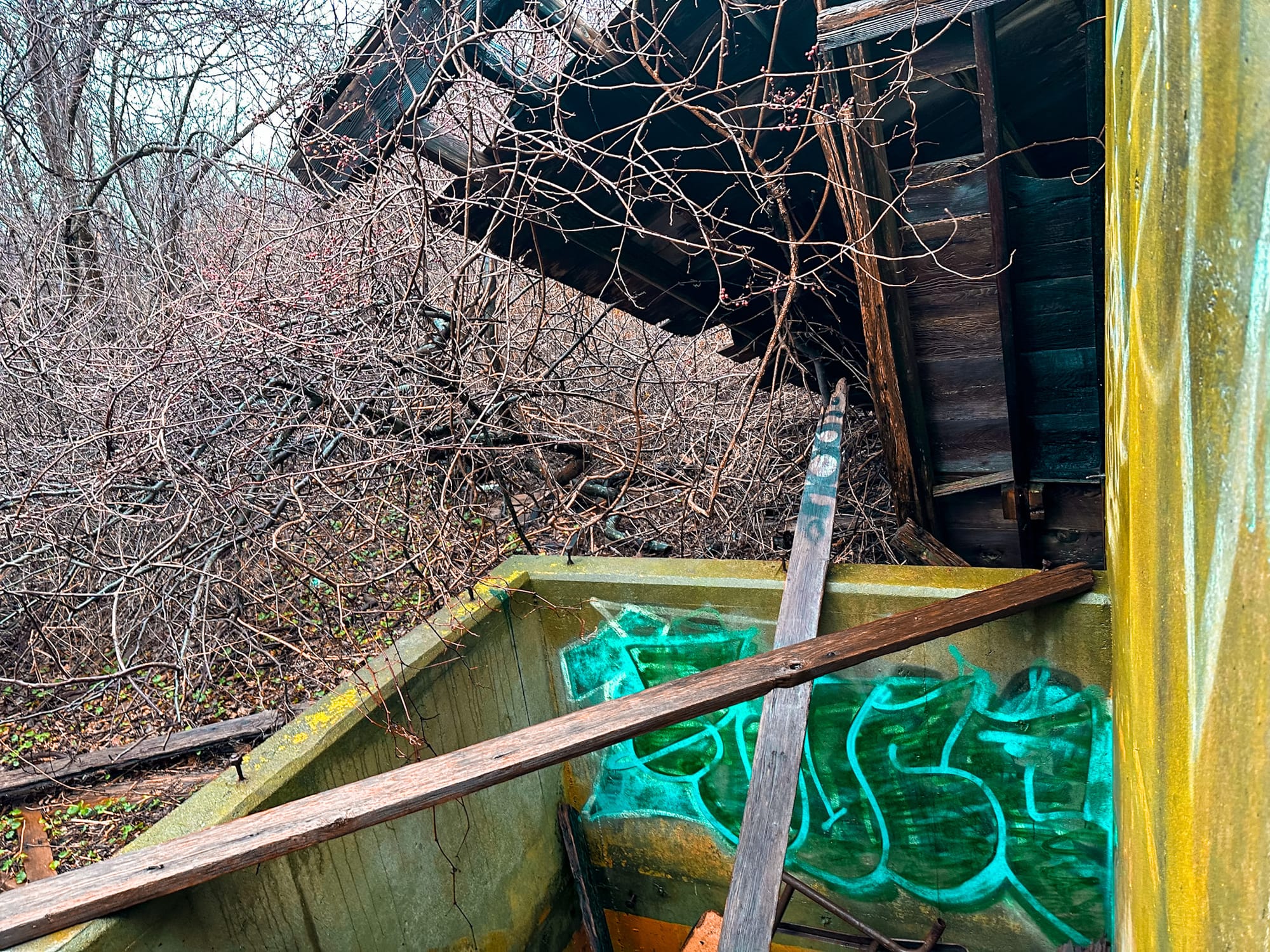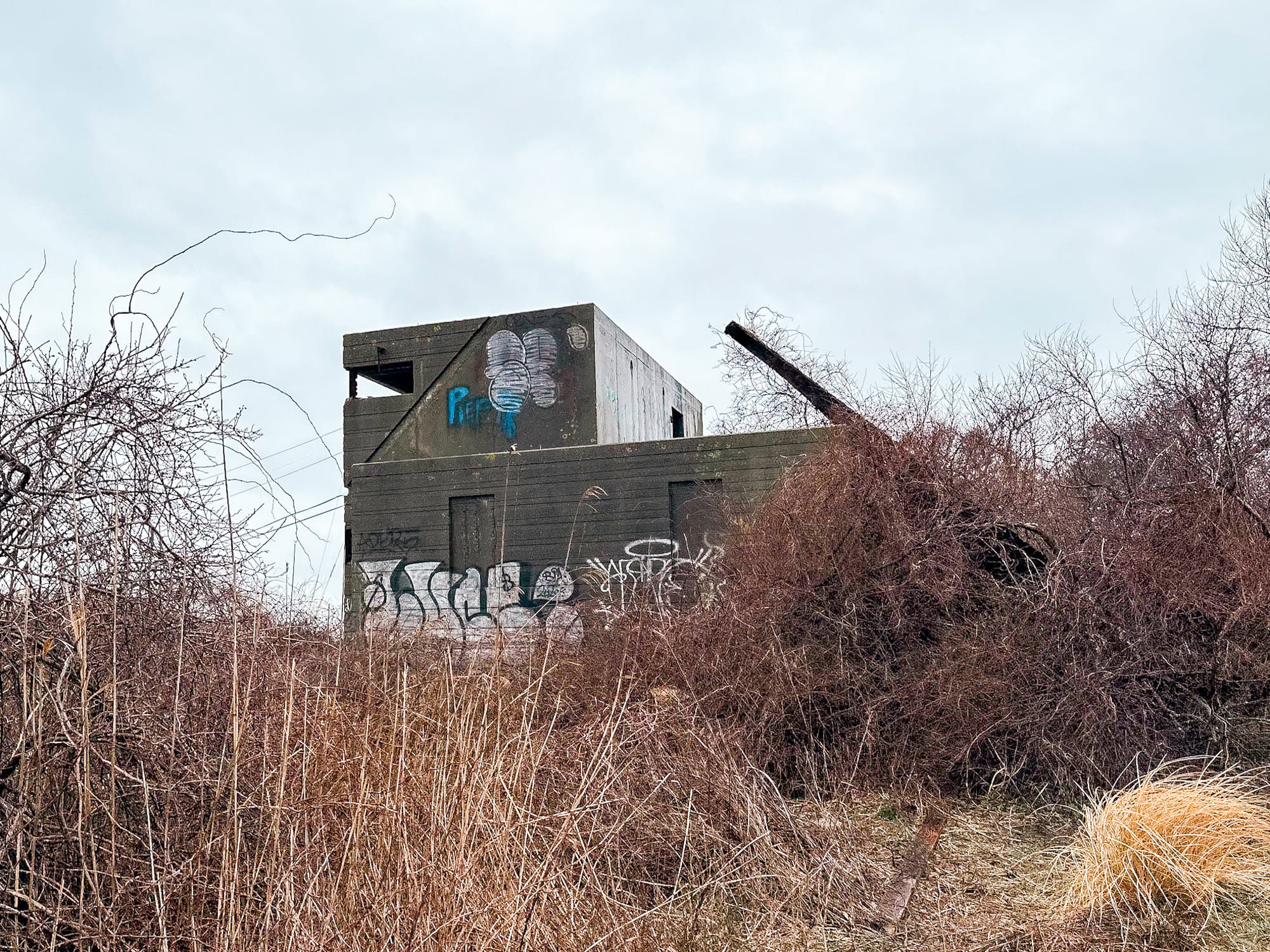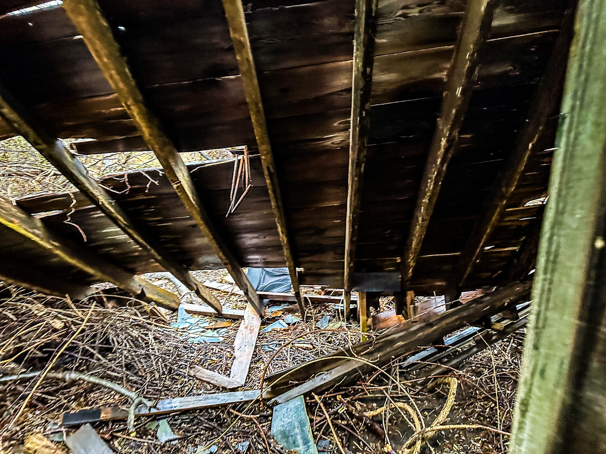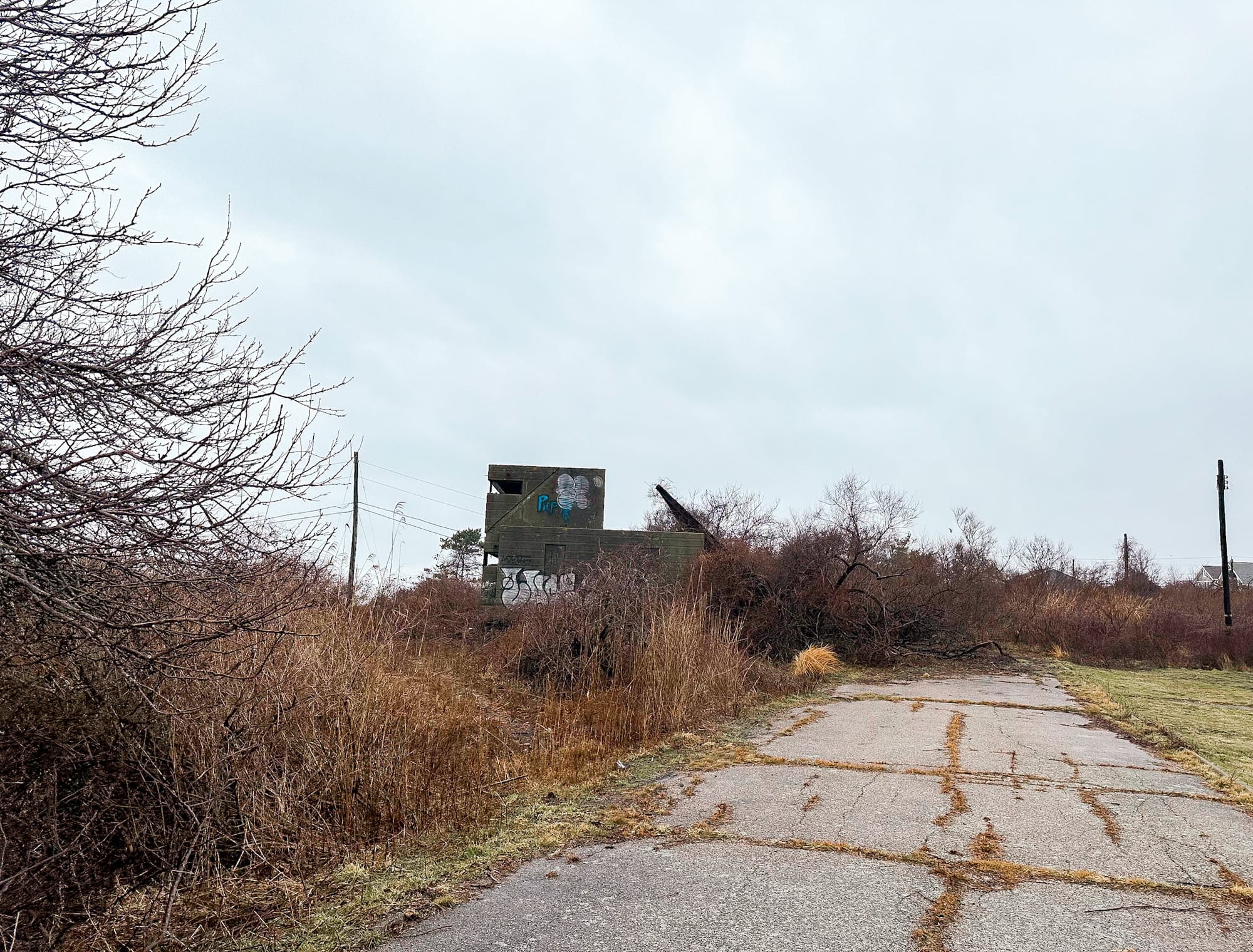 - 🏚 Current Condition: Concrete core only; wood roof and siding gone