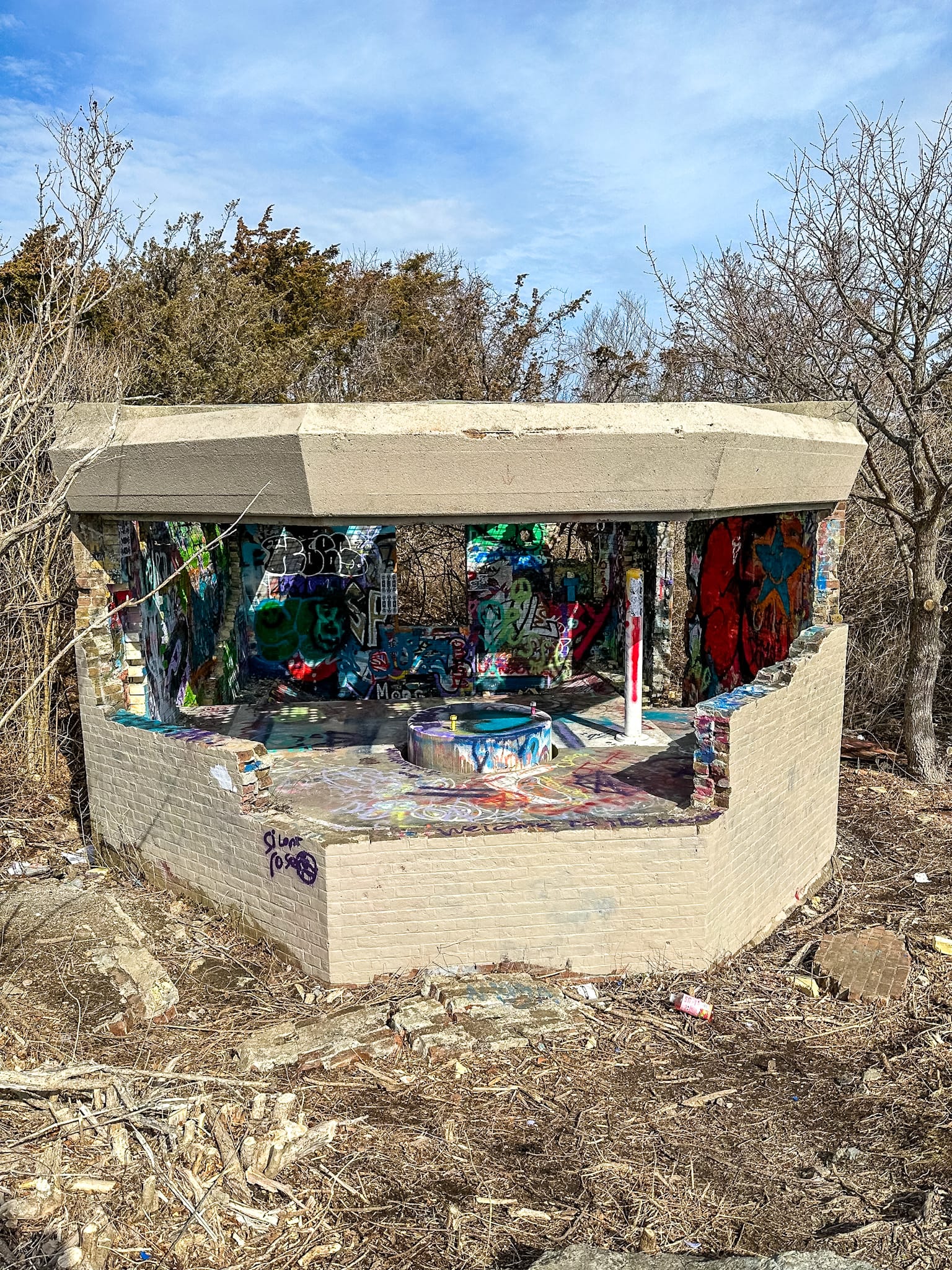 Today, the building stands abandoned and weathered, surrounded by tall grass, wildflowers, and sweeping ocean views. For those exploring Fort Wetherill State Park, it’s a must-see stop — a place where history and scenery blend seamlessly atop the island’s rugged cliffs.