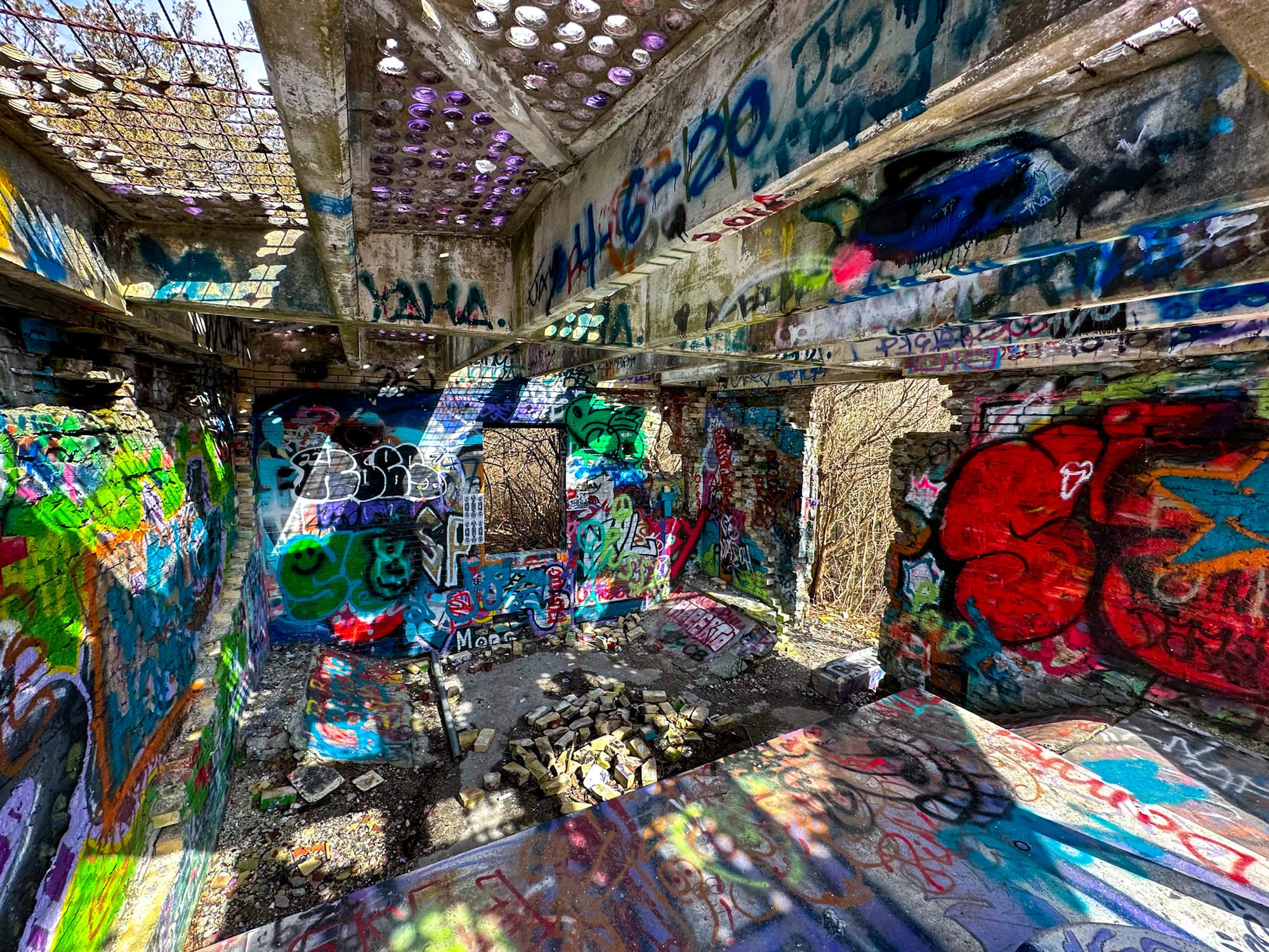 - 🏚 Condition: Abandoned, weathered, and partially graffiti-covered