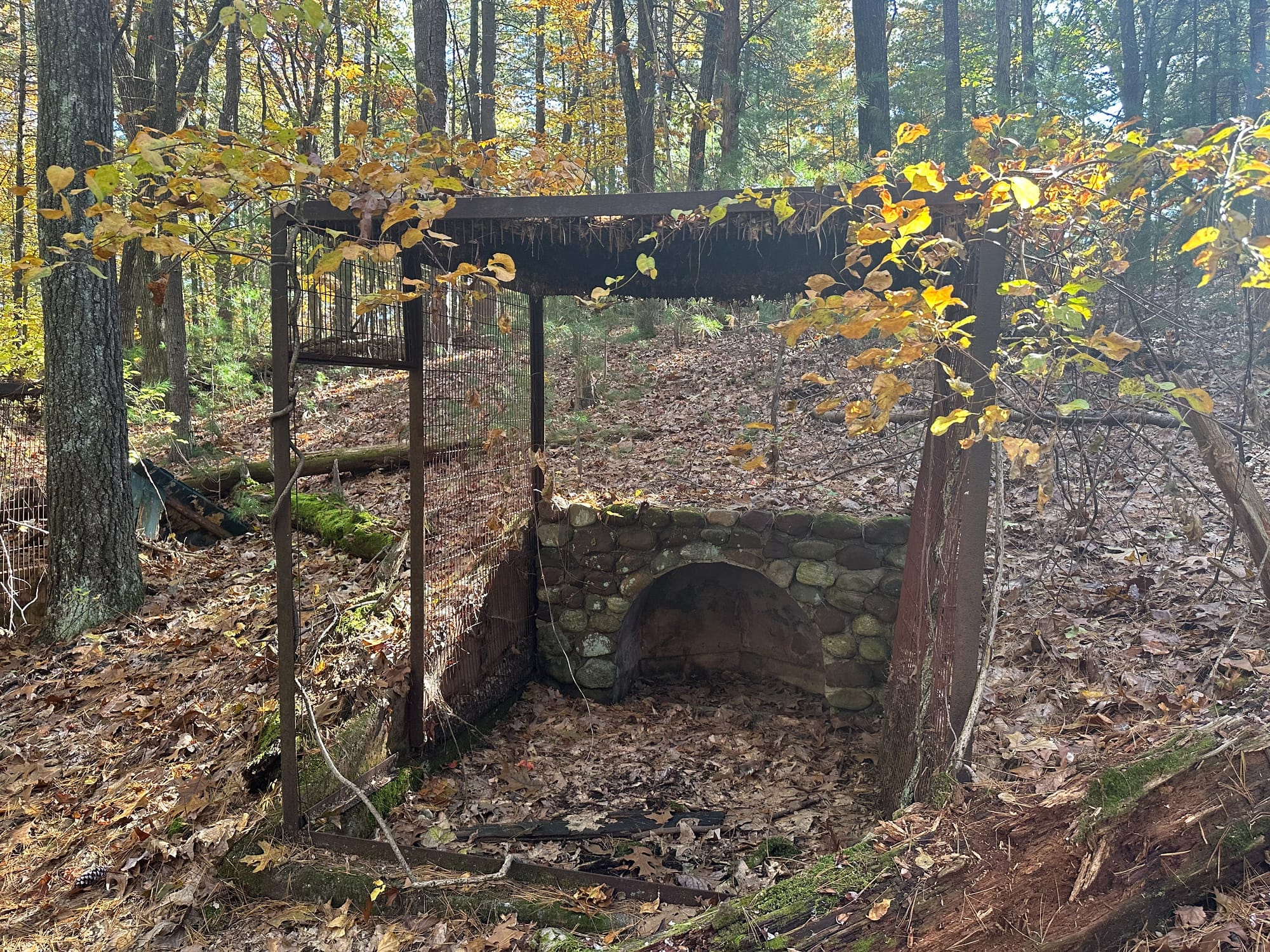 Although much of the sanctuary has deteriorated, the rusting fences and scattered ruins are hauntingly beautiful — particularly in the fall, when the forest floor glows with leaves.